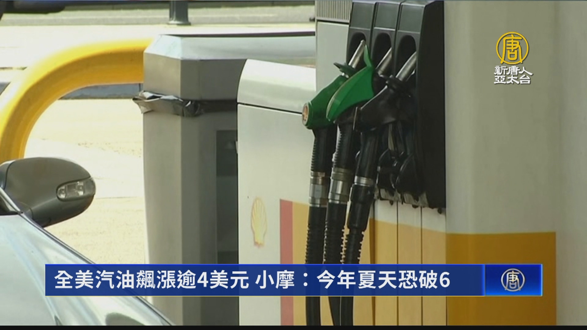 【新唐人亞太台 2022 年 05 月 18 日訊】國際油價持續飆升,美國汽油價跟著上揚。根據美國汽車協會數據,美國各州的汽油價格,上漲到每加侖4美元以上。加州是最貴的地方,平均每加侖為6.021美元,創下新高。摩根大通指出,隨著越來越多美國人開車上路,汽油的儲存量水準已經下降;這波漲勢恐怕才剛開始,預估今年夏季美國汽油價格,可能會攀升到 6 美元以上。