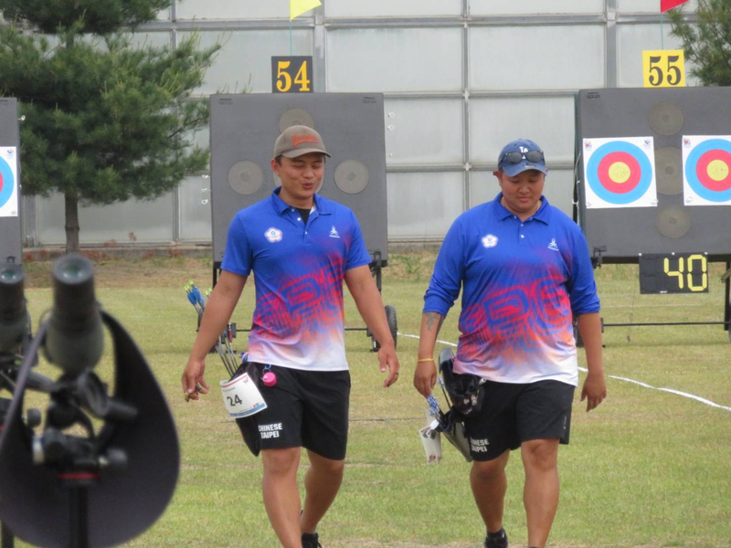 台灣射箭代表隊混雙搭檔黃逸柔(右)與陳界綸 (左),21日將在射箭世界盃光州站複合弓混雙決賽中與愛沙尼亞爭奪金牌。 (圖/射箭協會提供)