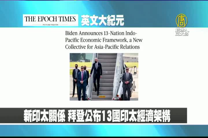 【新唐人亞太台 2022 年 05 月 24 日訊】首先來看到美國大紀元英文版報導:新印太關係,拜登公布13國印太經濟架構。