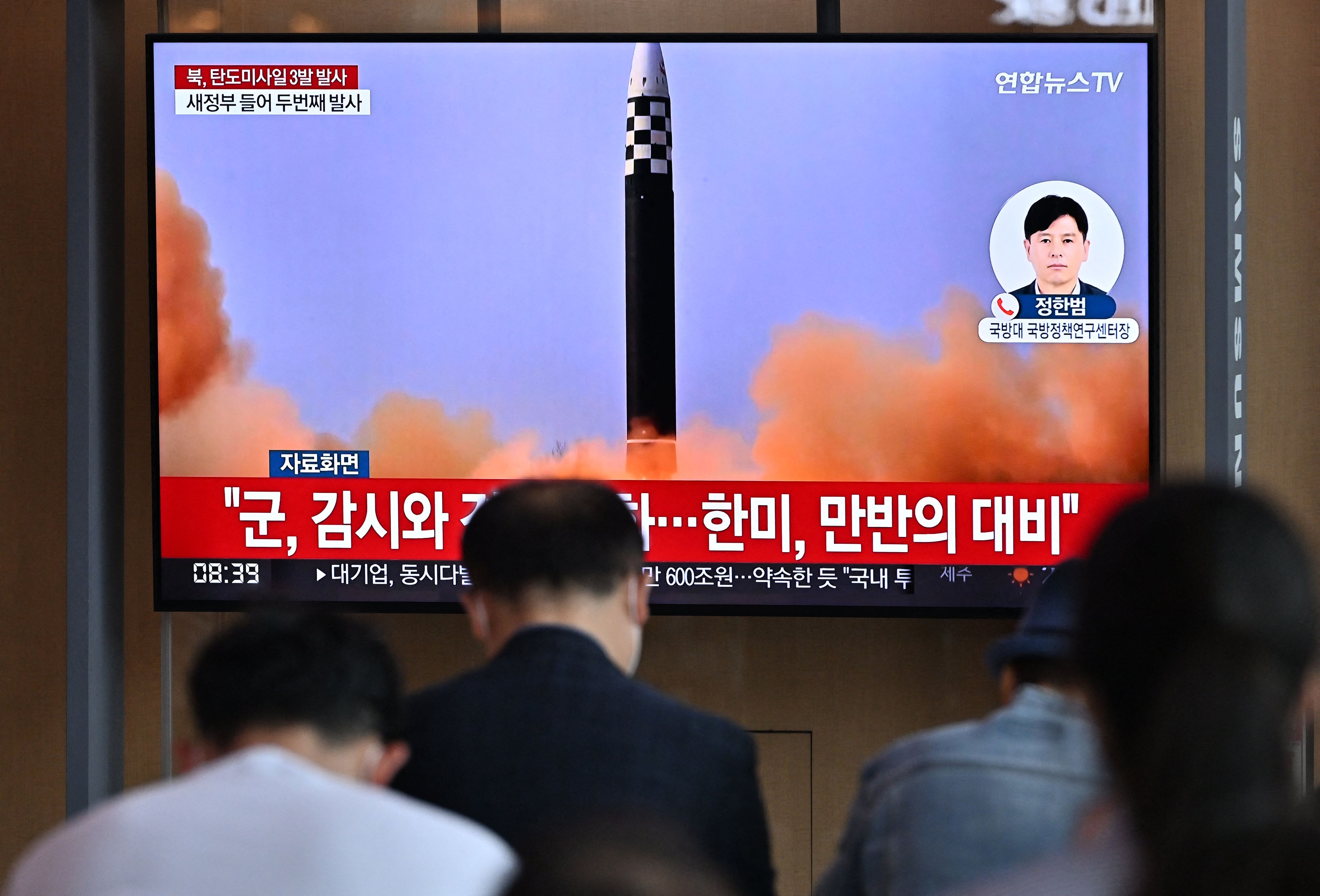 美國總統拜登訪問亞洲期間同意升高舉措以遏阻核武北韓,在他結束訪問行程離開亞洲後短短數小時,南韓軍方指出,北韓25日朝東部海域發射3枚彈道飛彈。圖為南韓民眾觀看關於飛彈試射的新聞。(圖/GettyImages)