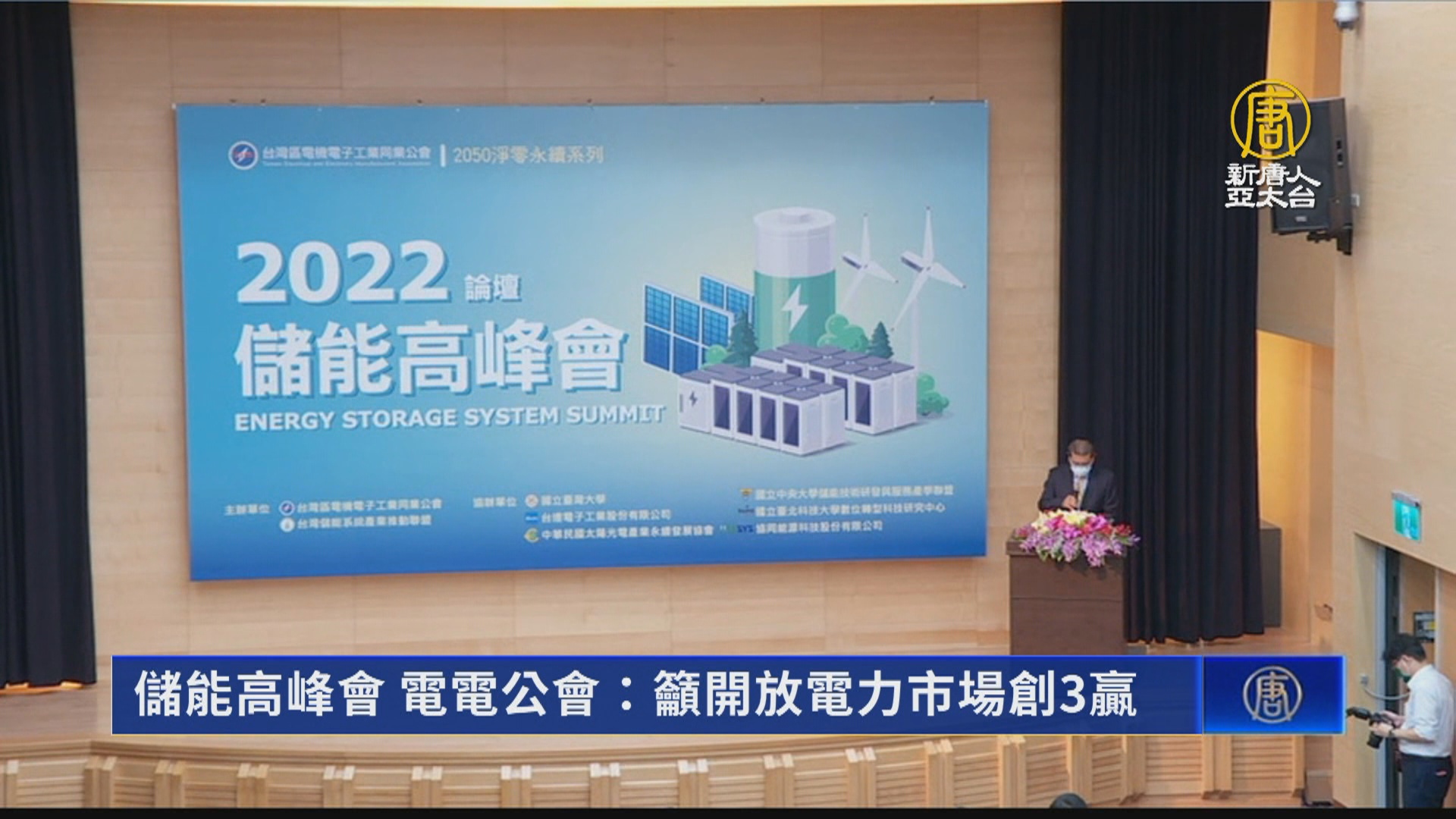 【新唐人亞太台 2022 年 05 月 25 日訊】台灣邁向2050淨零排放目標,電電公會今天舉辦儲能高峰會論壇。邀請產官學研代表,切磋交流。