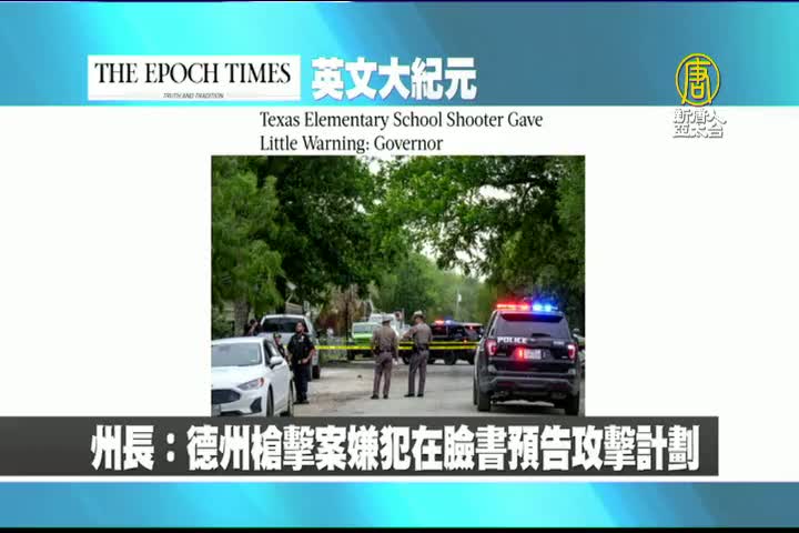 【新唐人亞太台 2022 年 05 月 26 日訊】首先來看到美國大紀元英文版報導:德州州長表示,校園槍擊案嫌犯在臉書預告攻擊計劃。