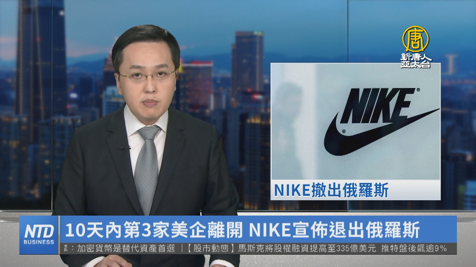 【新唐人亞太台 2022 年 05 月 26 日訊】俄國出兵侵略烏克蘭之後,多個國際品牌接連退出俄羅斯市場,繼麥當勞、星巴克宣布退場後,NIKE也要終止俄羅斯的業務,短短10天之內,已有三家美國大型企業,放棄俄羅斯市場。