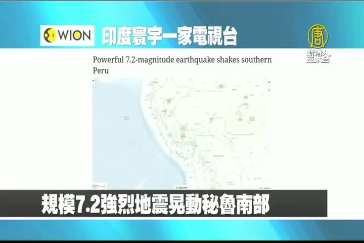 【新唐人亞太台 2022 年 05 月 27 日訊】最後是印度寰宇一家電視台報導:根據美國地質調查局,週四秘魯南部城市發生規模7.2強烈地震,目前為止,還沒有人員傷亡和損失報告。