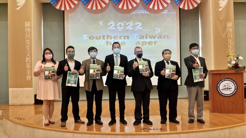 南台灣美國商會31日發表「2022年南台灣白皮書」, 會長艾德華(右3)表示,感謝愈來愈多國家和官員主張台灣參與世界衛生組織(WHO)的工作,健康絕不能有政治上的限制。(圖/中央社)