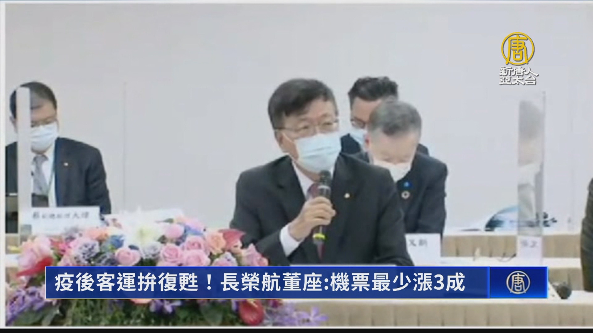 【新唐人亞太台 2022 年 05 月 31 日訊】長榮航31日舉行股東會,看好疫情解封後復飛商機,董事長林寶水預告,疫情後的機票價格至少會漲3成以上。林寶水說,在高油價及高通膨推升成本攀高之下,機票價格在後疫情時代是非漲不可,由於我國邊境即將鬆綁,將積極找回旅客,希望今年的營收及獲利會比去年更好。