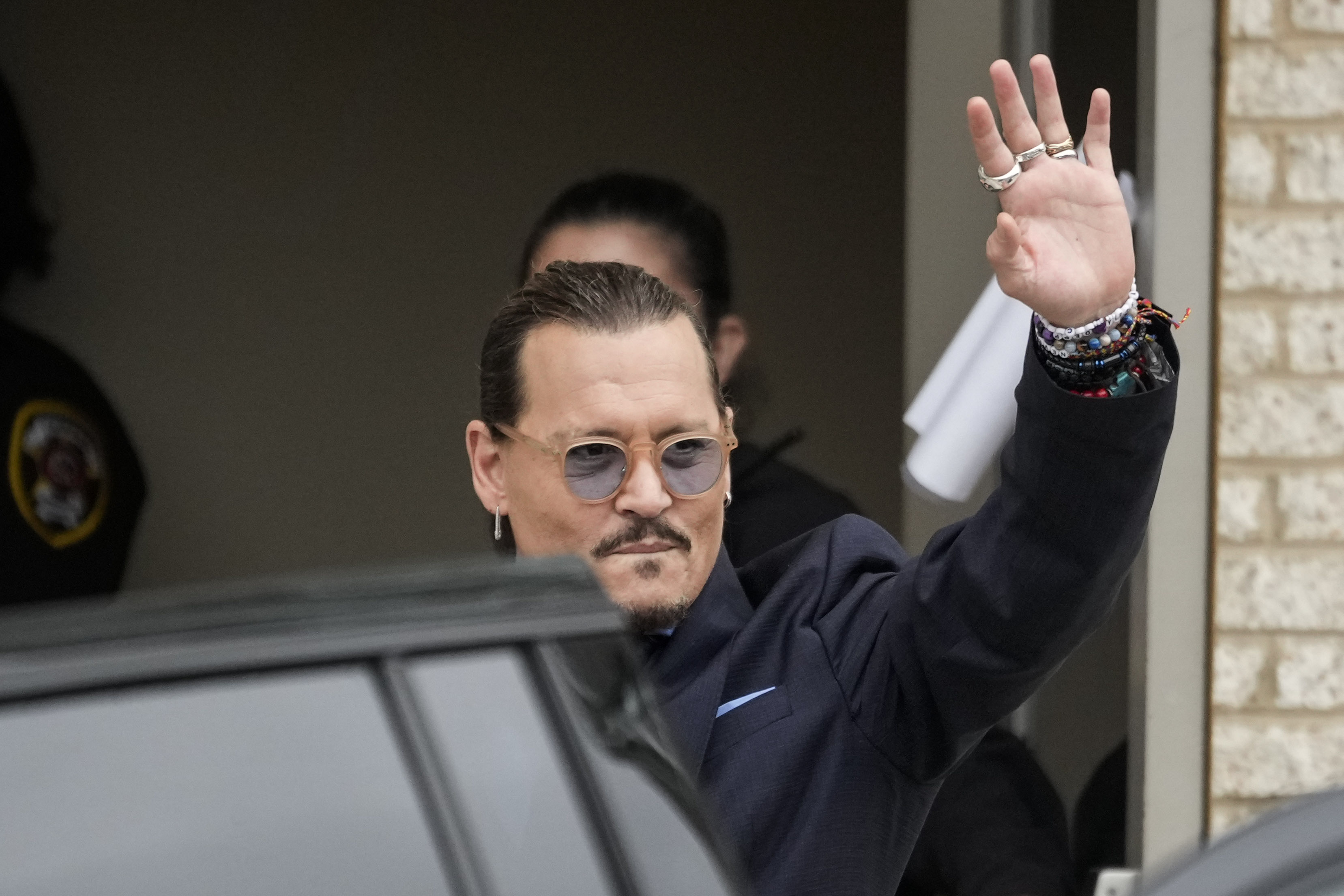 好萊塢影星強尼戴普(圖)在1日贏得與前妻安柏赫德的誹謗官司後發布聲明表示,陪審團「把我的人生還給了我」。圖為強尼戴普27日離開法院時向粉絲揮手致意。(圖/GettyImages)