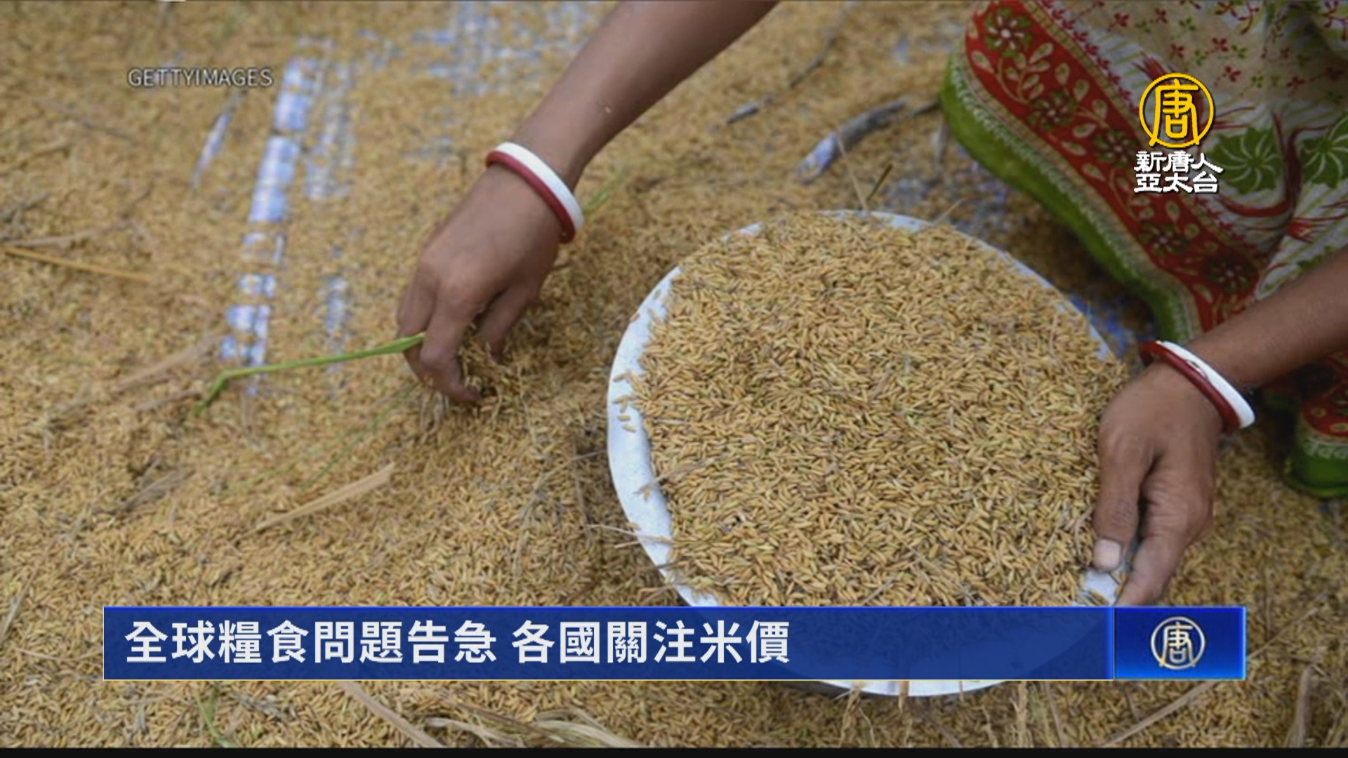 【新唐人亞太台 2022 年 06 月 02 日訊】在全球糧食告缺、通膨飆漲情況下,世界各國政府正密切關注稻米價格,尤其在開發中國家,稻米是小麥最常用的替代品,印度是世界最大稻米出口國,占全球貿易40%。目前印度已經限制小麥外銷,市場憂心下一個管制的目標,可能就是稻米。分析指出,各國政府一察覺穀物供應可能有問題,就會開始下令禁止出口,添增不確定性並加重採購壓力。目前雖然有相當的儲備量,但大都在中國大陸;其他地區如中東,也已策略性囤積穀物儲備。