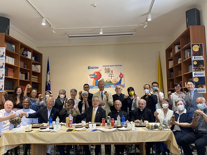 3日是端午節,駐教廷大使館邀台灣籍及曾在台服務神職人員過節,也盼台灣及世界早日度過疫情。(圖/外交部提供)