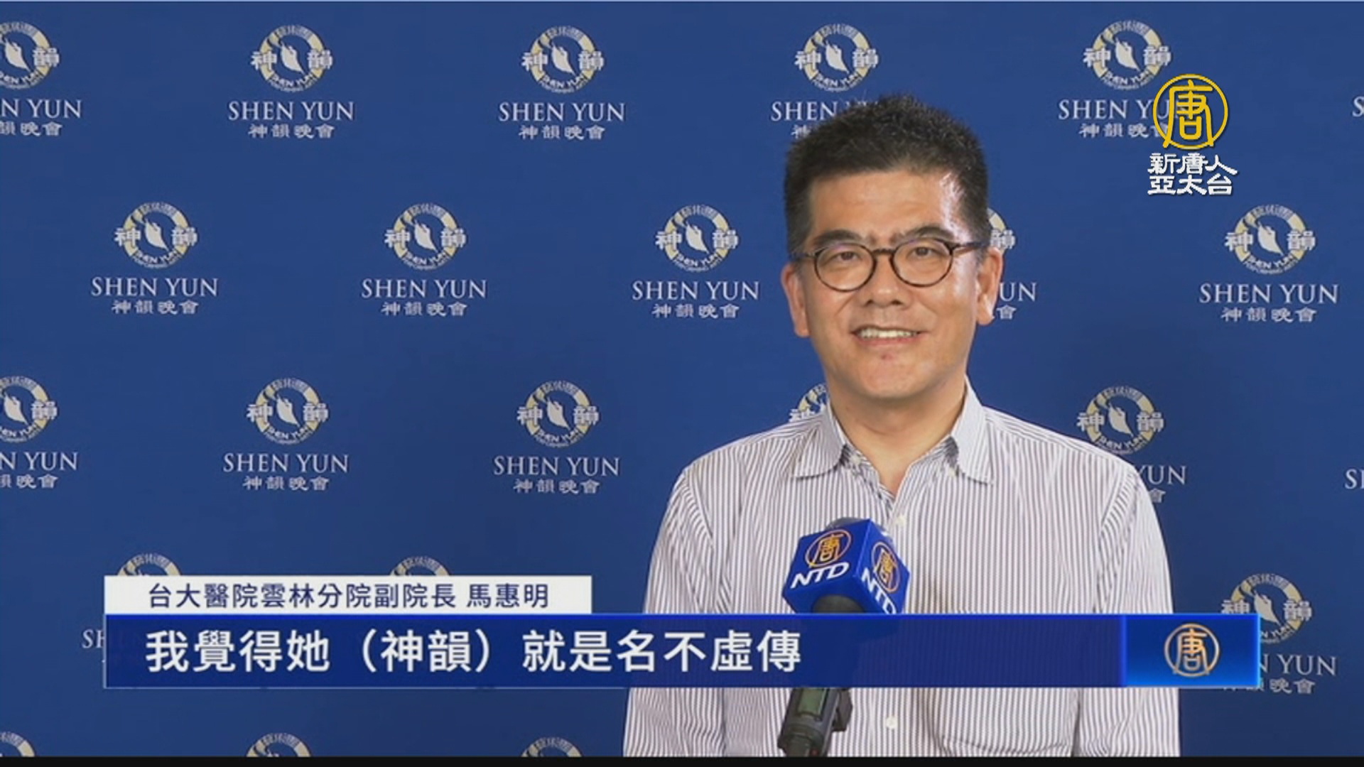 台大醫院雲林分院副院長 馬惠明:「我覺得她(神韻)就是名不虛傳,交響樂團因為我上一次感受到,這一次主要是舞蹈團的演出,就是真功夫,真底子,大家的這個舞蹈的底子,又融合這些舞台的這些效果,滿有震撼力。」