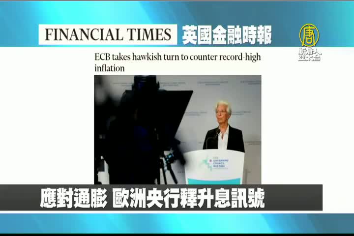 【新唐人亞太台 2022 年 06 月 10 日訊】接著是英國金融時報的報導:應對通膨,歐洲央行9日決策會議轉向「鴿派」決策,決定結束歷時約7年的「資產購買計畫」,為十多年來首次升息鋪路。