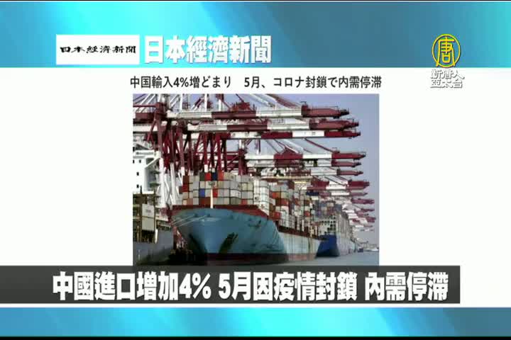 【新唐人亞太台 2022 年 06 月 10 日訊】來看到日本經濟新聞報導:中國進口復甦緩慢,僅增加4%。5月因為疫情封鎖,內需仍然停滯不前。
