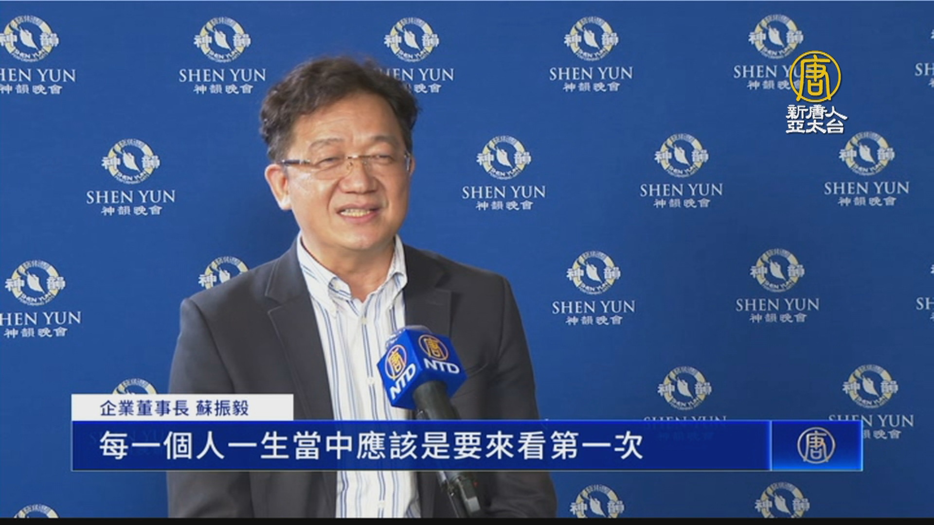 盛讚神韻是每人一生必看的演出,蘇振毅是台灣木地板製造商龍頭,產品拓展到美國五角大廈及全球最高建築杜拜哈里發塔,首次觀賞神韻的他,敬佩神韻在全球的正面影響力,希望年年再看,也希望14億中國民眾同享美好。