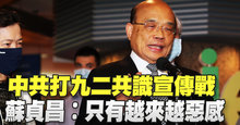 中共打九二共識宣傳戰 蘇貞昌︰只有越來越惡感