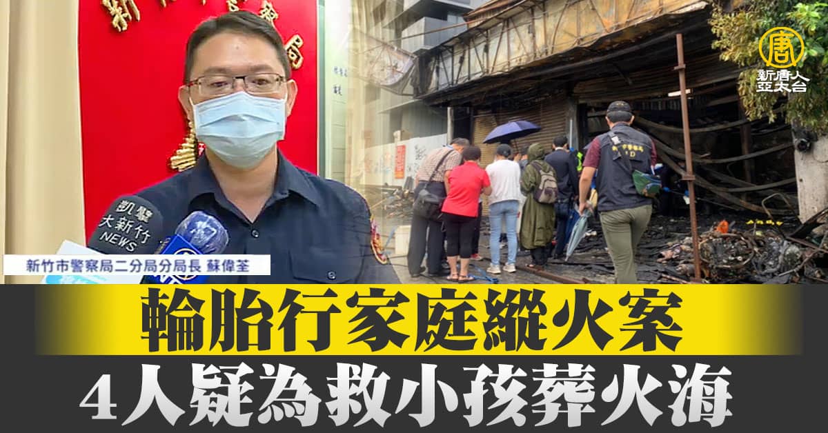 【新唐人亞太台 2022 年 06 月 16 日訊】新竹市正義輪胎行,15日晚間10點左右發生二級火警,消防局表示,這棟建築為兩層樓鐵皮建物,一樓是輪胎汽車維修廠,疑似因為家庭爭吵,屋主的小兒子縱火行兇,造成8死1傷,死者中也有兇手的妻子和3名幼子。而消防隊今早說明時也提及,當時第一時間,4個年幼孩子在二樓,家中的婆婆、嫌犯的妻子、兄嫂和嫌犯的妹妹,為了搶救2樓的孩子全奔上樓,結果4大4小同命喪火場!