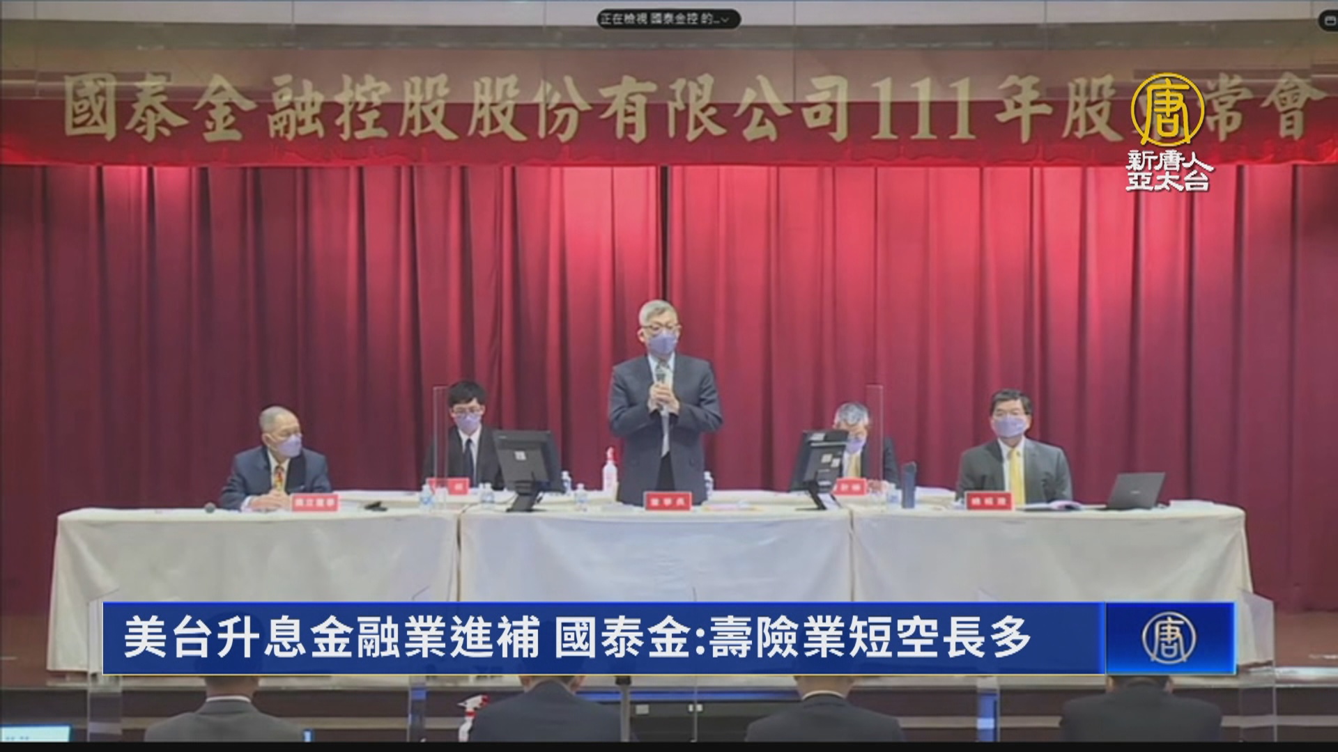 【新唐人亞太台 2022 年 06 月 17 日訊】昨天央行理監事會,罕見點名全球經濟面臨多個黑鵝天、灰犀牛來襲,不過金控業者可說力挺景氣並不悲觀,國泰金舉行股東會,認為全球央行升息趨勢下,對壽險業來說是「短空長多」,董事長蔡宏圖,也親自回應外界關注的防疫保單問題。