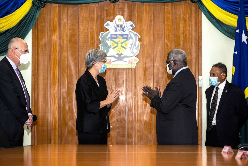澳表示反對中共與索羅門群島簽署的新安全協議,說太平洋地區不需外力幫助來保護自身。澳外長黃英賢(圖左)(Penny Wong)在索國首都荷尼阿拉(Honiara)訪問時傳達訊息。(圖/GettyImages)