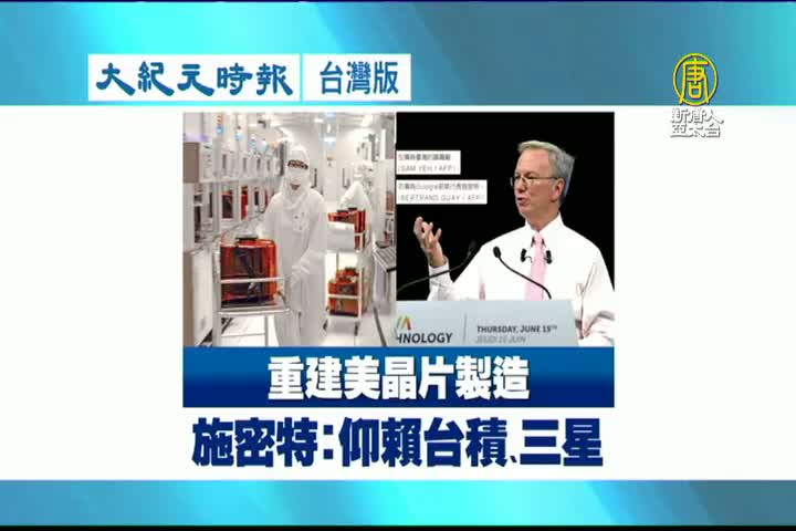 【新唐人亞太台 2022 年 06 月 22 日訊】接著看到大紀元時報台灣版報導:Google前執行長施密特(Eric Schmidt)表示,台積電的產業實力在未來5~10年內不會消失,美國想分散在臺灣生產的風險,最有效的方式是邀請台積電赴美設廠。