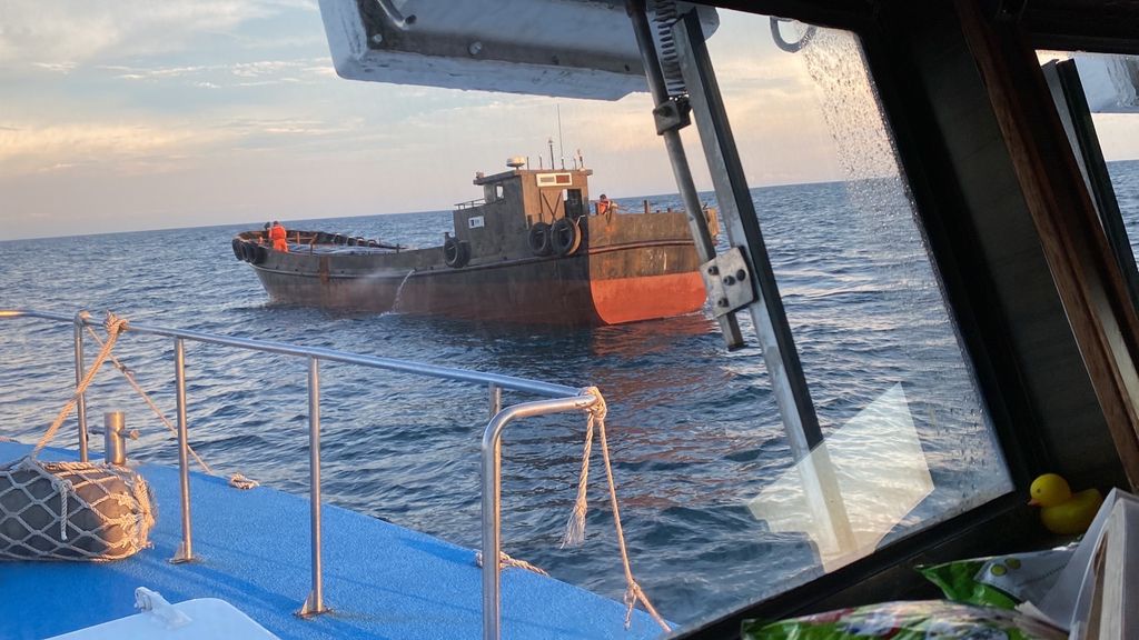 【新唐人亞太台 2022 年 06 月 23 日訊】一艘中國籍漁船,昨天下午被台灣漁民發現闖入苗栗外海,海巡署立即派遣巡防艇到場,經登船檢查,查獲20噸豬肉製品,因越界明確,已將船隻與船上4人拖返台中港偵辦。