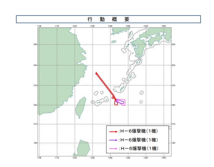 對於轟6機飛經沖繩本島與宮古島之間的海域,日本航空自衛隊西南航空方面隊的戰鬥機緊急升空因應,持續追蹤監控。