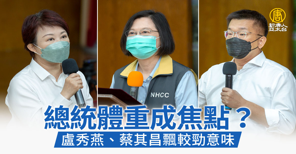 【新唐人亞太台 2022 年 06 月 25 日訊】總統蔡英文週六到國軍台中總醫院視察,台中市長盧秀燕、立法院副院長蔡其昌雙雙到場陪同。致詞時盧秀燕關心總統消瘦了,但蔡其昌以「會叫總統多吃點」回應,互動中聞到一絲較勁意味。