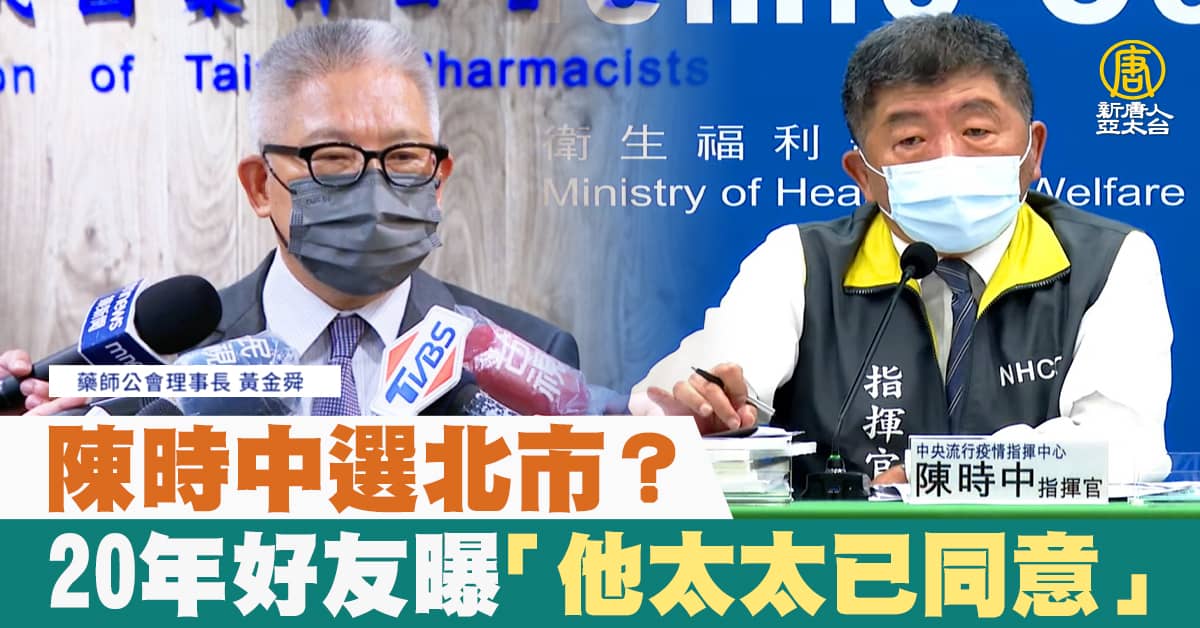 【新唐人亞太台 2022 年 06 月 28 日訊】年底台北市長選舉,國民黨參選人蔣萬安備戰起跑,民進黨人選至今還沒決定,名嘴周玉蔻也搶先在臉書上爆料,確定就是衛福部長陳時中。但陳時中下午回應,「跟她完全沒談論過這件事」。和陳時中有20年交情的藥師公會理事長黃金舜,也透露陳時中參選關鍵就是太太點頭,民進黨提名時間可能落在全代會7月17日前後。
