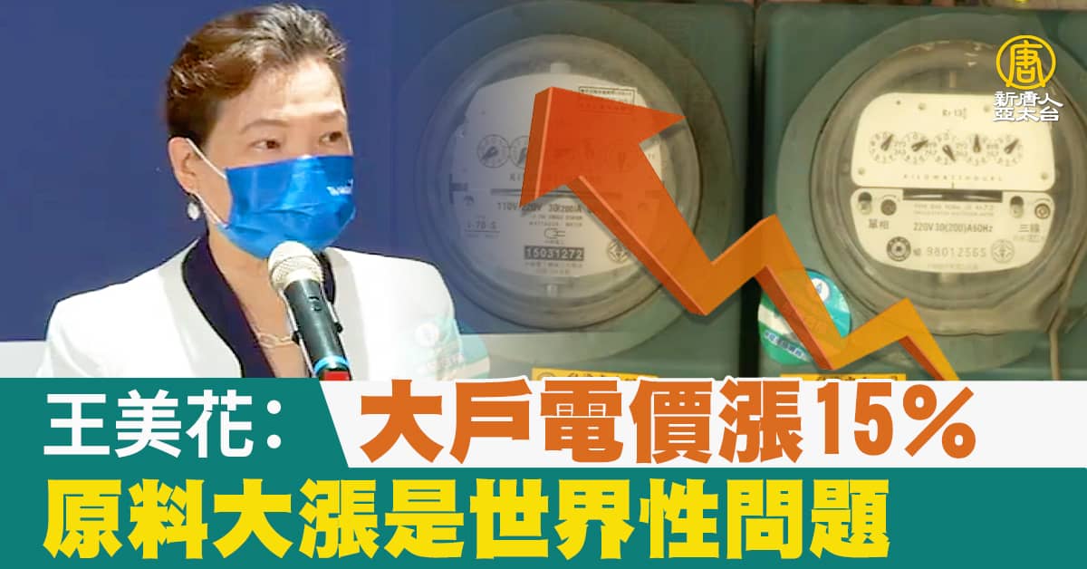 大戶電價漲15%王美花:原料大漲是世界性問題