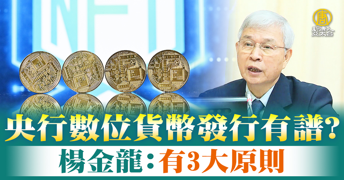 【新唐人亞太台 2022 年 06 月 29 日訊】各國政府開始研究,央行數位貨幣的可行性。央行總裁楊金龍今天表示,第2階段的「通用型CBDC試驗計畫」,原定9月完成試驗,目前已提早3個月完成。不過,楊金龍強調,推動數位貨幣不是要競賽搶先發行,是要獲得社會大眾的支持、精進平台設計,以及研議堅實的法律架構,在這3大基本原則下,才會推出後續規劃。