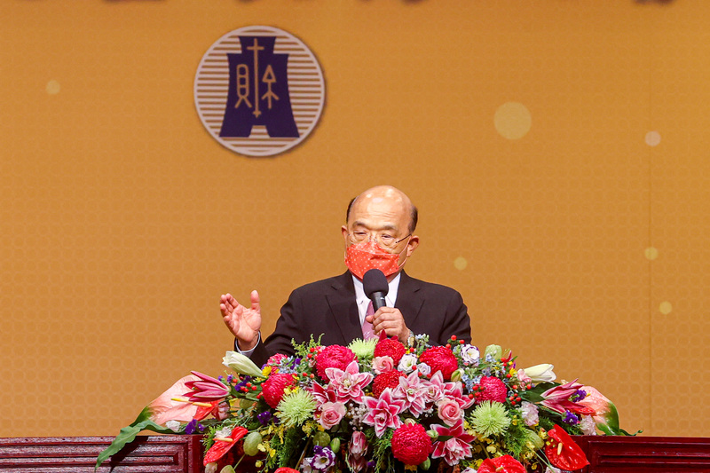 行政院長蘇貞昌(圖)1日上午出席111年稅務節慶祝暨表揚大會擔任頒獎人,他致詞時表示國政推動仰賴稅源健全,並向所有稅務、關務人員表達敬意和感謝。(圖/中央社)