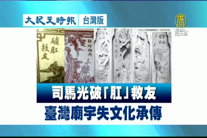 【新唐人亞太台 2022 年 07 月 04 日訊】接著看到大紀元時報台灣版報導:臺灣廟宇建築大量使用中國製品,出現司馬光破「肛」救友,等文字笑話,失去文化承傳。