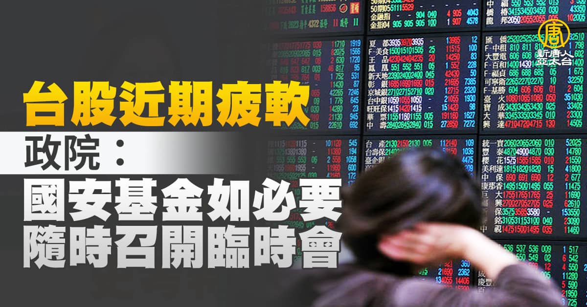 台股近期疲軟 政院:國安基金如必要隨時召開臨時會