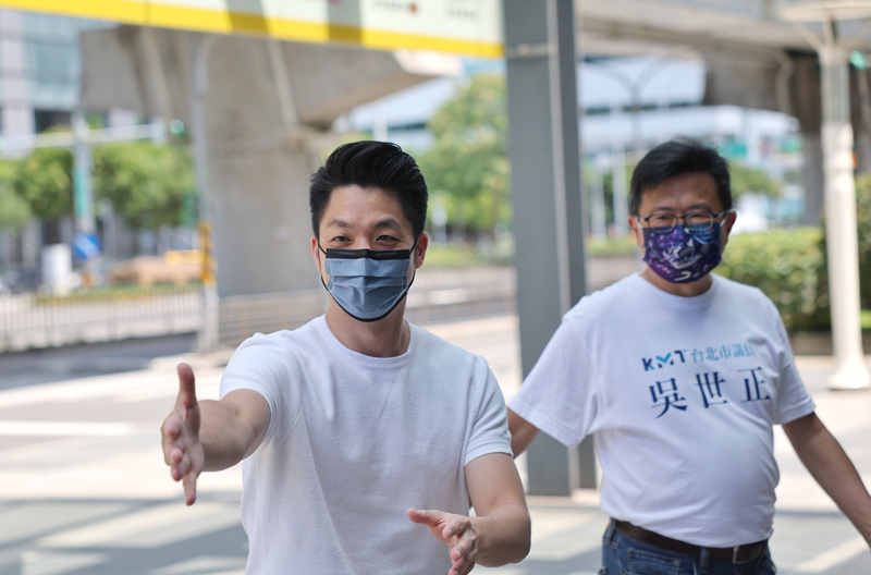民進黨選對會建議徵召衛福部長陳時中參選台北市長,國民黨參選人蔣萬安說,陳時中個人政治決定絕不能影響防疫,且去年的防疫成績不該成為參選墊腳石。蔣萬安(左)10日前往南港展覽館參觀台北寵物用品展。(圖/中央社)