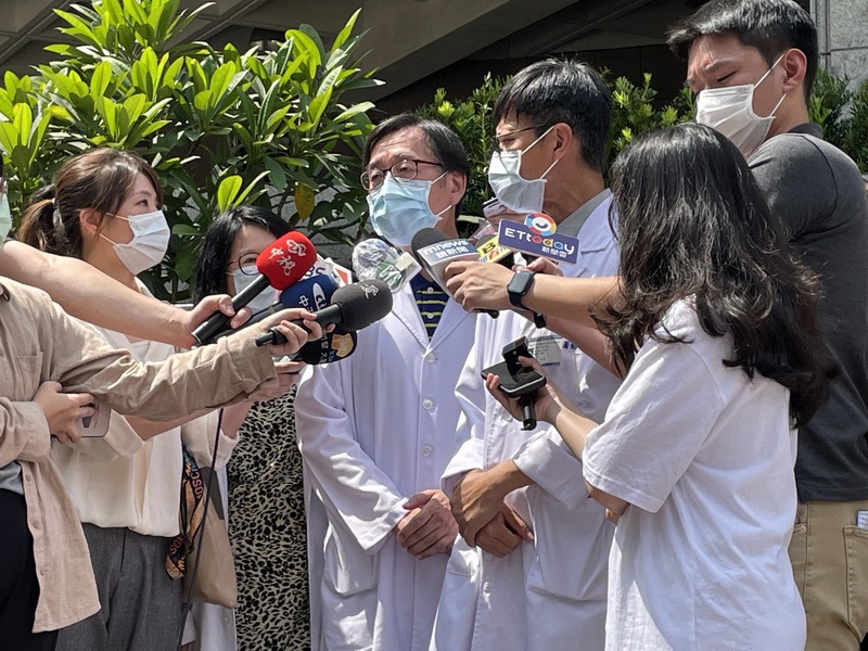 台北市副市長蔡炳坤右腦出血性中風,聯合醫院仁愛 院區主治醫師林文雄(中)12日表示,目前持續鎮靜 治療中,病人在此狀況下會處於深度昏迷。(圖/中央社)