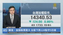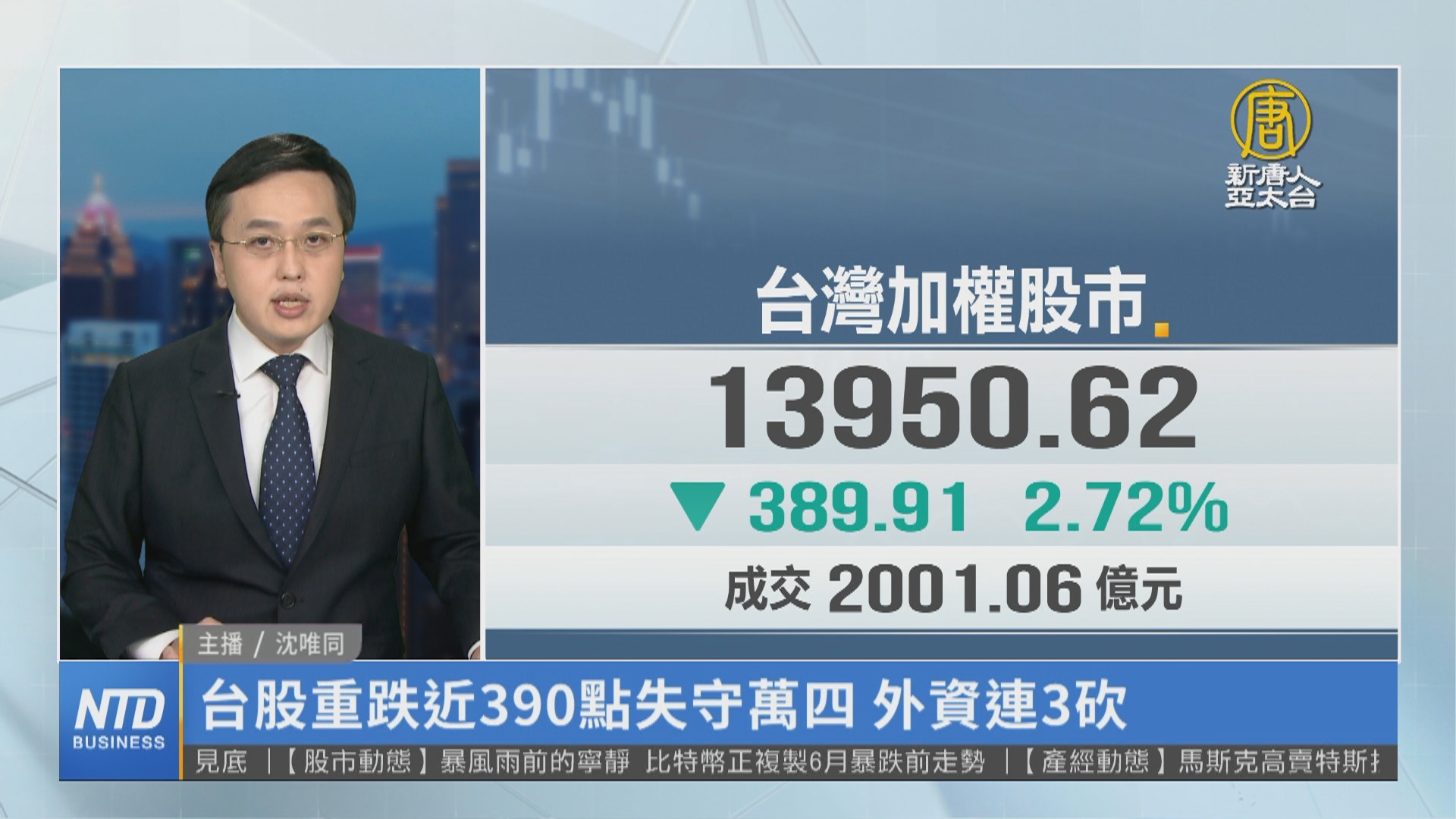 【新唐人亞太台 2022 年 07 月 12 日訊】新聞一開始帶您看到,美股周一,三大指數紛紛走弱,投資人擔憂中國疫情再起,加上美國2年期,以及10年期公債殖利率倒掛,美國企業即將公布,上半年獲利財報,也讓市場較為觀望。台股方面,受到國安基金不護盤的心理層面影響,早盤開低走低,終場下跌389.91點,摜破萬四大關。尤其金控業上半年獲利,減少超過3成,金融股成為重災區,三大法人今天持續賣超,成交量下探1996億。