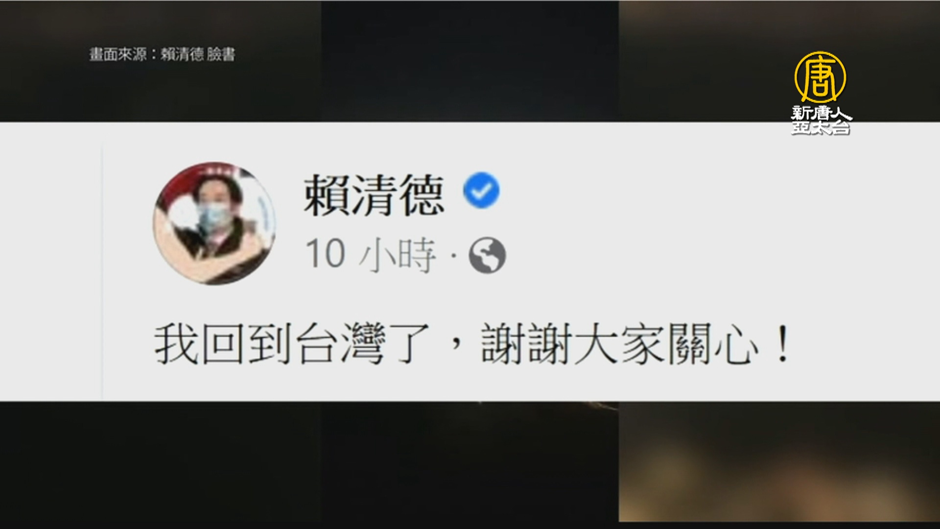 【新唐人亞太台 2022 年 07 月 13 日訊】早安新唐人,先帶您關心,副總統賴清德赴日本東京親自弔唁日本前首相安倍晉三,賴副總統在昨晚返抵國門,沒有發表任何談話,與他在日本的行程一樣,維持低調,賴副總統晚間在社群媒體刊登,從飛機上拍攝的畫面,窗外是桃園機場附近的海岸夜景,飛機緩緩下降,賴副總統只寫兩行字,「我回到台灣了,謝謝大家關心」。大量網友湧入留言,許多政要與媒體人都寫「辛苦了」。賴清德以親友的身分參加安倍家祭,此行是繼1985年,李登輝於副總統任內至日本進行非正式訪問後,37年來首位現任副總統層級赴日。