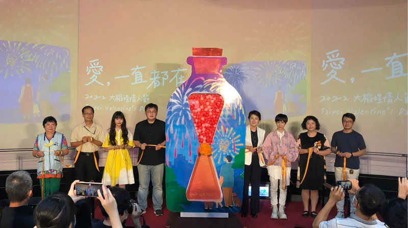 台北市觀傳局13日舉辦「2022大稻埕情人節–愛,一直都在」活動記者會,揭曉當天舞台表演卡司,期望大家踴躍走出戶外,欣賞浪漫煙火秀,大膽表達愛。(圖/中央社)