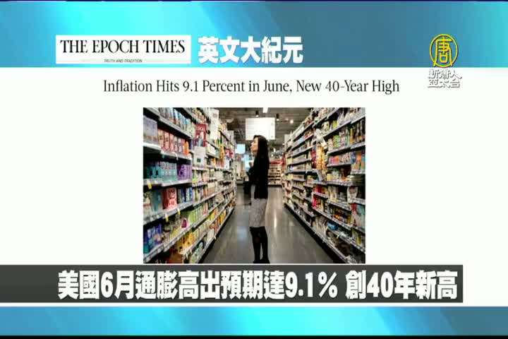 【新唐人亞太台 2022 年 07 月 14 日訊】首先來看到美國大紀元英文版報導:美國6月通膨高出預期達9.1%,創40年新高。