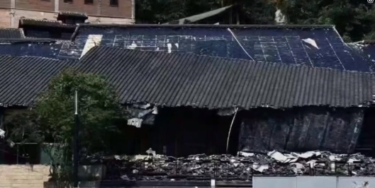 從網友發布的圖片可見,紀念館的房頂因瀝青在高溫中曬化,導致瓦片大面積整體滑落。