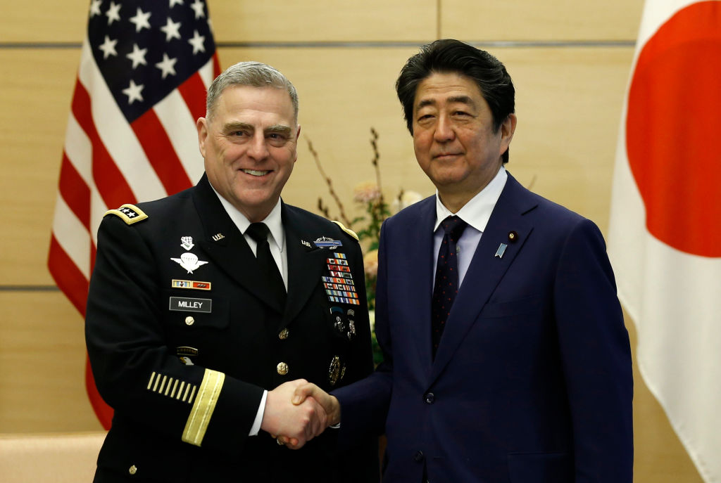 日本前首相安倍晉三(圖右)遇刺身亡,日本放送協會(NHK)報導, 日本政府將於今年秋天舉辦國葬,是日本戰後政府參與舉辦前首相喪禮第2例。資料照。(圖/GettyImages)