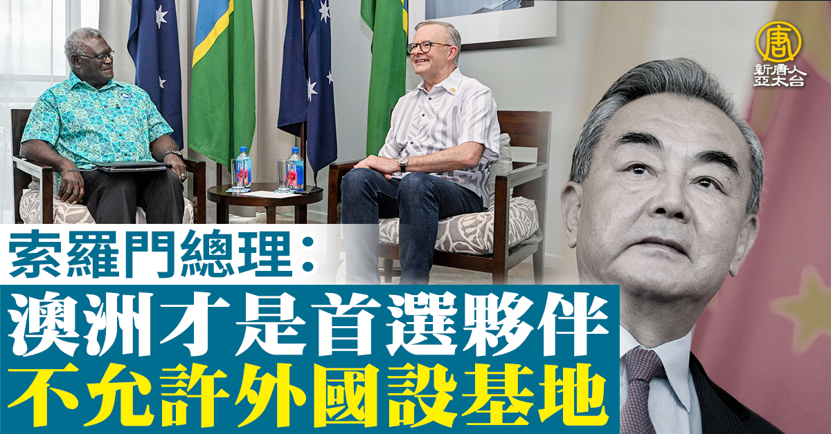 澳洲總理艾班尼斯13日在斐濟與索羅門群島總理蘇嘉瓦瑞會面後,蘇嘉瓦瑞14日在對外媒表示,澳洲仍是「首選安全夥伴」,非不得已時才會請中國派維安人員協助;且由於擔心成為「軍事攻擊」目標,索羅門不會讓外國軍事基地進駐。澳洲總理艾班尼斯14日也說,他「很有信心」索羅門群島不會出現中國軍事基地。