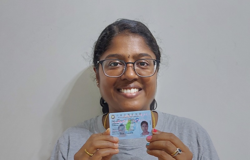 印度環境科學博士吉塔(Thangavel Sangeetha)致力研究新興微生物燃料電池科技,5年前接受台北科技大學邀約抵台執教,許多學子受啟發相繼投入環境工程產業,今年以「高級專業人才」身分,申獲外僑永久居留證「梅花卡」。(圖/移民署提供)