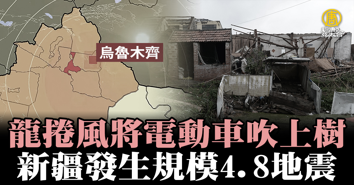 龍捲風將電動車吹上樹 新疆發生規模4.8地震