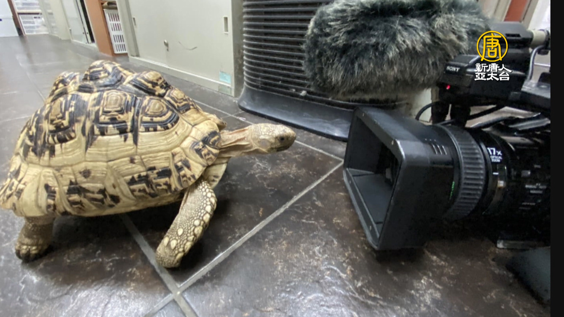 獸醫師:「這是豹紋陸龜,上禮拜民眾在路上撿到的,我們懷疑牠就是自行脫逃,或是民眾有棄養(的狀況)。」