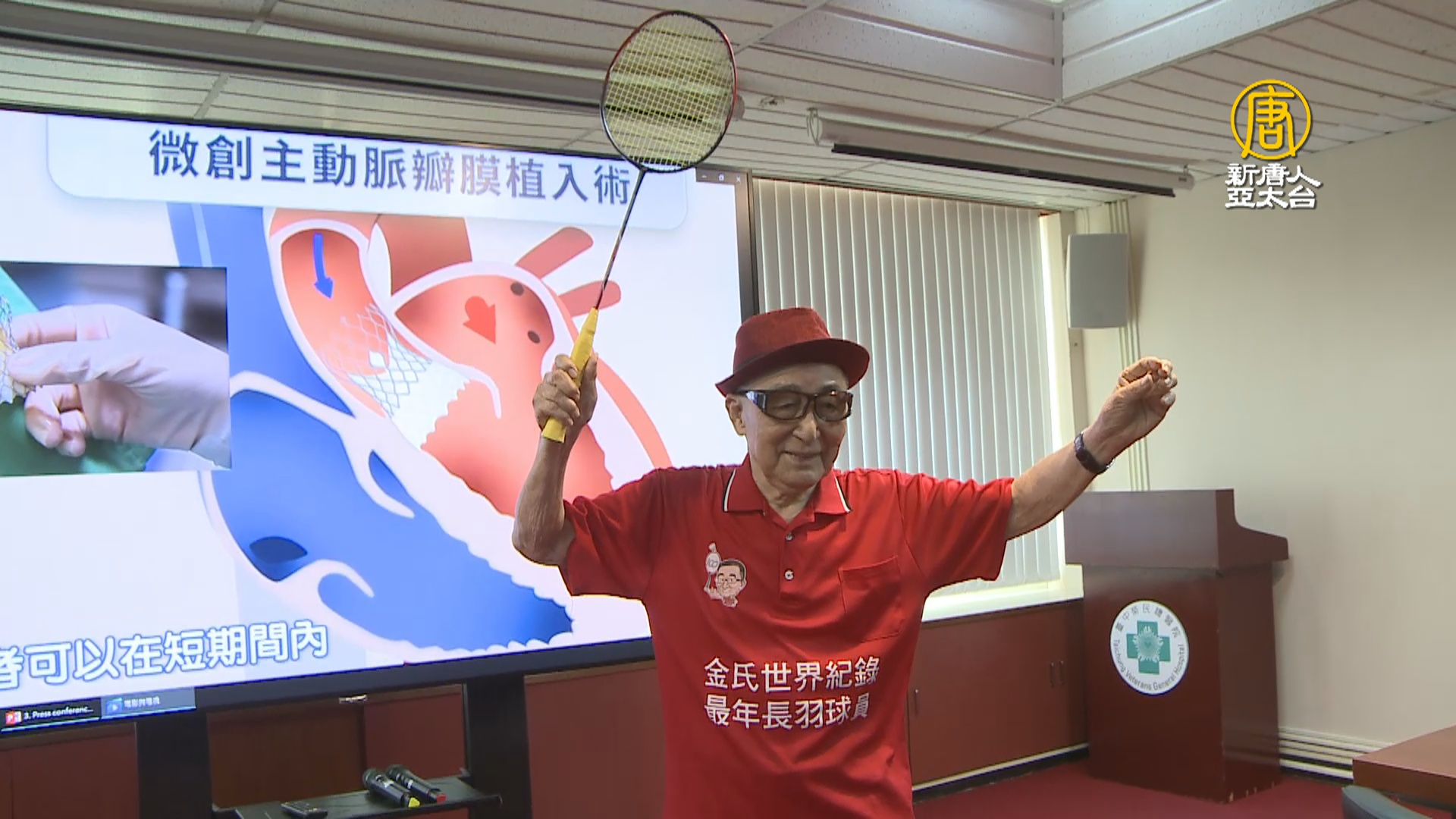 【新唐人亞太台 2022 年 07 月 22 日訊】健康消息,主動脈瓣膜狹窄,是常見的退化性心臟疾病,如果沒有妥善治療可能導致心衰竭甚至死亡,金氏世界記錄最年長的羽球選手,百歲林老爺爺,去年發現主動脈瓣嚴重狹窄及閉鎖不全,在台中榮總醫療團隊治療下,成功瓣膜置換,再度讓爺爺重返球場。