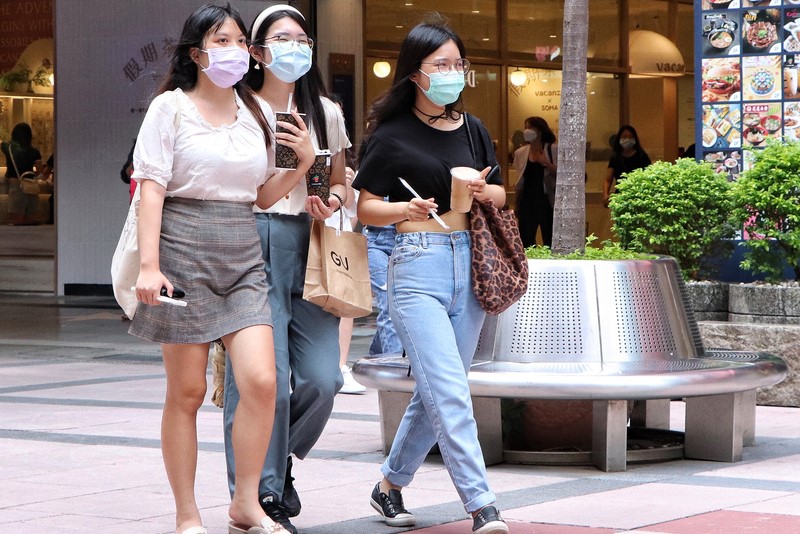 炎炎酷暑來襲,很多人狂喝手搖飲消暑,醫師提醒,含糖飲是脂肪肝凶手之一,建議少喝或選無糖。圖為中午時段台北信義區逛街民眾人手一杯手搖飲。(圖/中央社)