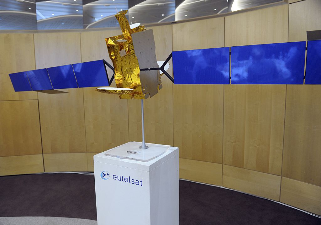 法國衛星營運商歐洲電信衛星與英國業者OneWeb宣布計劃合併,盼能成為寬頻網路領域的全球領頭羊。 圖為法國衛星運營商歐洲電信衛星(Eutelsat)在巴黎的總部展示衛星模型的資料照。 (圖/GettyImages)