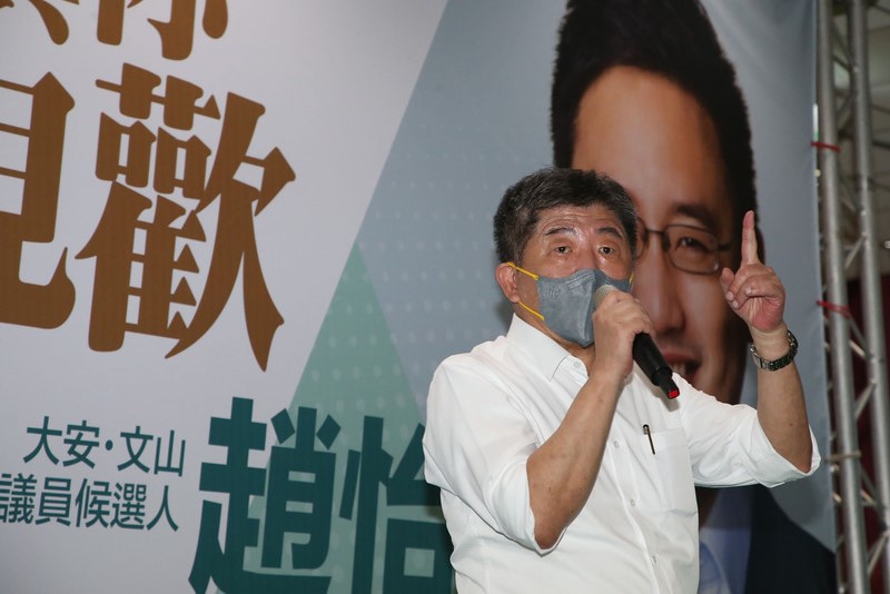 民進黨台北市長參選人陳時中(圖)27日晚間與同黨北市大安文山區議員參選人趙怡翔同台造勢,陳時中致詞時表示,「哪有需要就去哪」是他的信念,很感動傳統上屬於深藍選區的文山區有這麼多鄉親到場支持,讓他看到翻轉的機會。(圖/中央社)