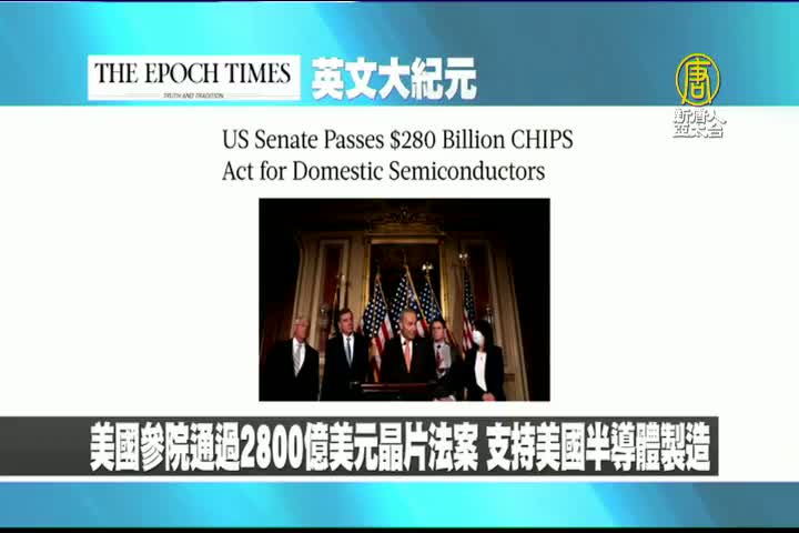 【新唐人亞太台 2022 年 07 月 28 日訊】首先來看到美國大紀元英文版報導:美國參議院通過2千800億美元晶片法案,支持美國半導體製造和研究。