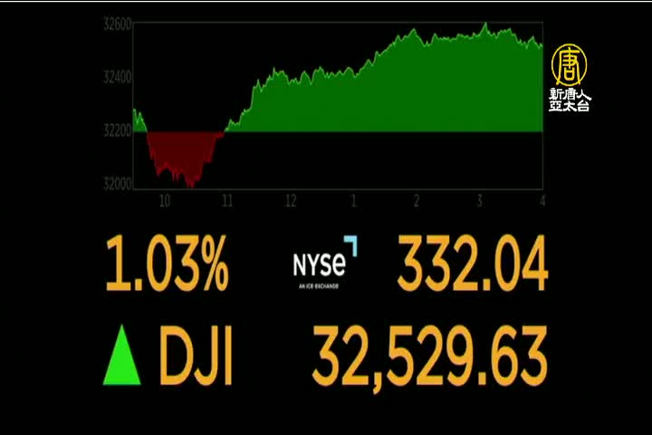 美股道瓊指數上漲 332.04 點,或 1.03%,收 32,529.63 點。