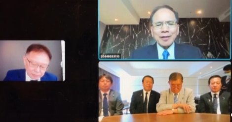 立法院長游錫堃29日表示, 他在返台檢疫期間與日本前防衛大臣石破茂等人組成的訪問團舉行視訊會議(圖),就烏俄戰爭對台灣與日本的影響等議題交換意見,共許印太地區和平穩定。(圖/翻攝自游錫堃臉書)
